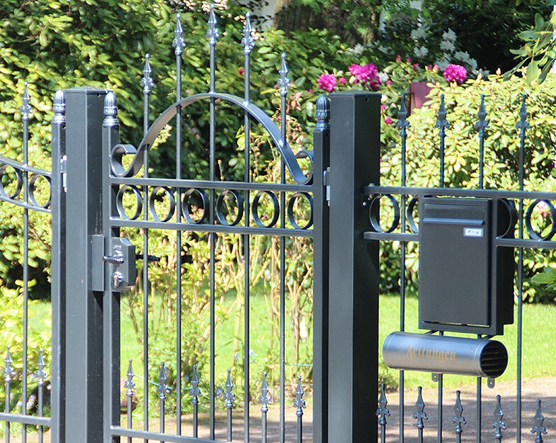 Einen besonders guten Eindruck hinterlassen Sie mit der Auswahl eines Schmiedeeisernen Gartentores. Unsere Gartentore sind aus Metall und speziell auf das Design der bei uns erhältlichen Metall-Gartenzäune abgestimmt. Wir haben auch die passenden Flügeltore und Schiebetore für Ihre Einfahrt. Weiterhin können Sie wählen, ob Sie Ihr Tor manuell, per elektrischen Torantrieb oder Elektroschloss öffnen und schliessen möchten.
